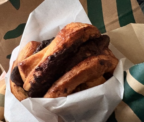 スタバさんバレンタインのドリンクやフード、デザートなどなどいろいろありますがサクサク生地とチョコレートフィリングがリッチで濃厚な味わいのご馳···